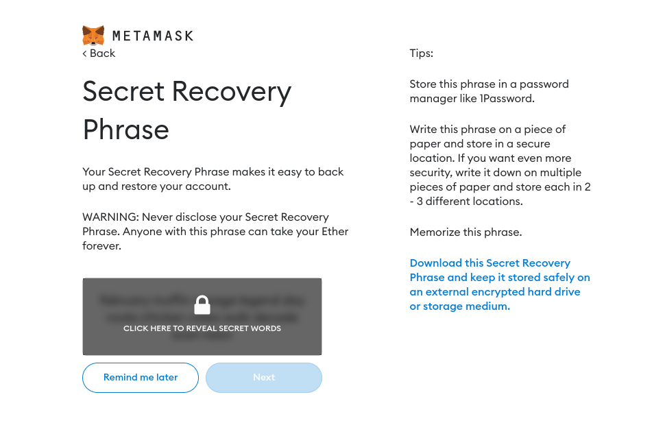 β οΈ Remember step 5! β οΈ Do not copy/paste the phrase. Do not take a photo of it. Only write it onto a slip of paper and ensure to keep it in a safe place.
