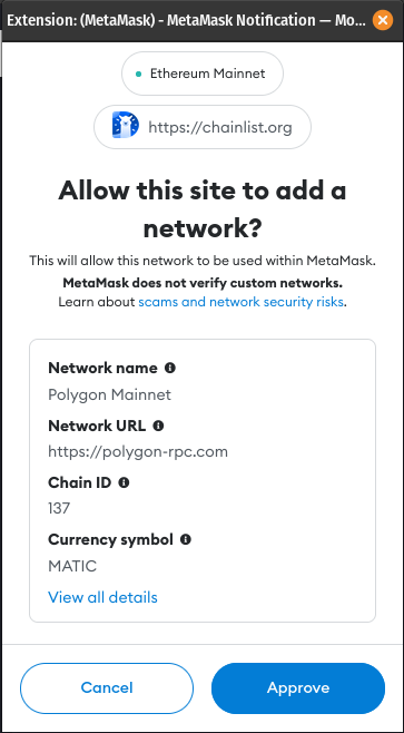 Now we have a wallet installed, we want to add Polygon support to our MetaMask. This will enable us to interact with apps & perform transactions on Polygon as well as the default network, Ethereum or, Mainnet as it oftentimes called. Polygon is waaaaay cheaper to use than Ethereum Mainnet.