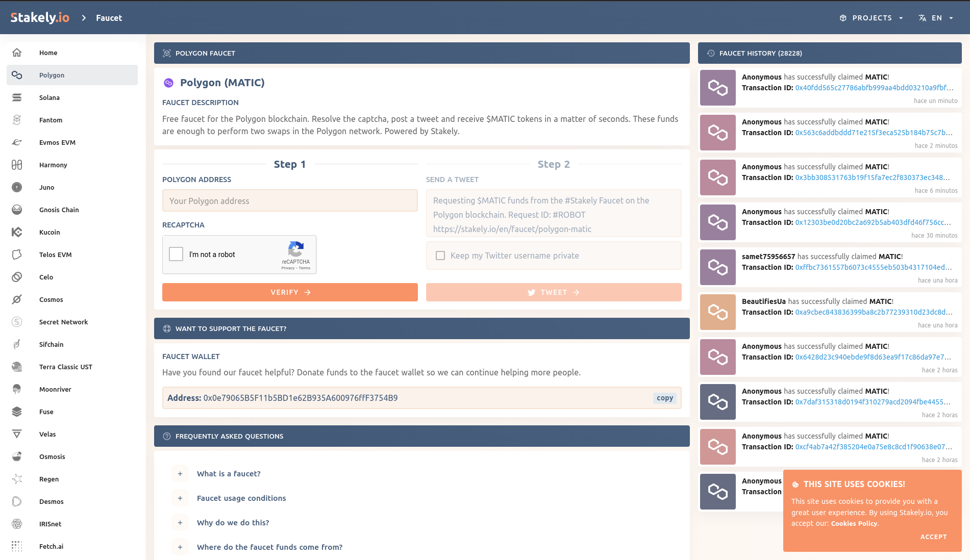 For MATIC tokens on Polygon, head to the Stakely.io Polygon Faucet
